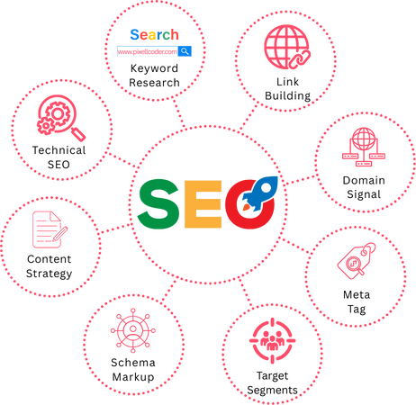 Pixellcoder is a top SEO service provider in Bangladesh, offering expertise in full-stack digital marketing services. With over 4 years of experience, we provide professional and affordable SEO solutions to help businesses attract more customers from search engines. Our services include advanced local SEO, global SEO, on-page and off-page audits, keyword research, optimized content creation, on-page strategy implementation, and link-building services.